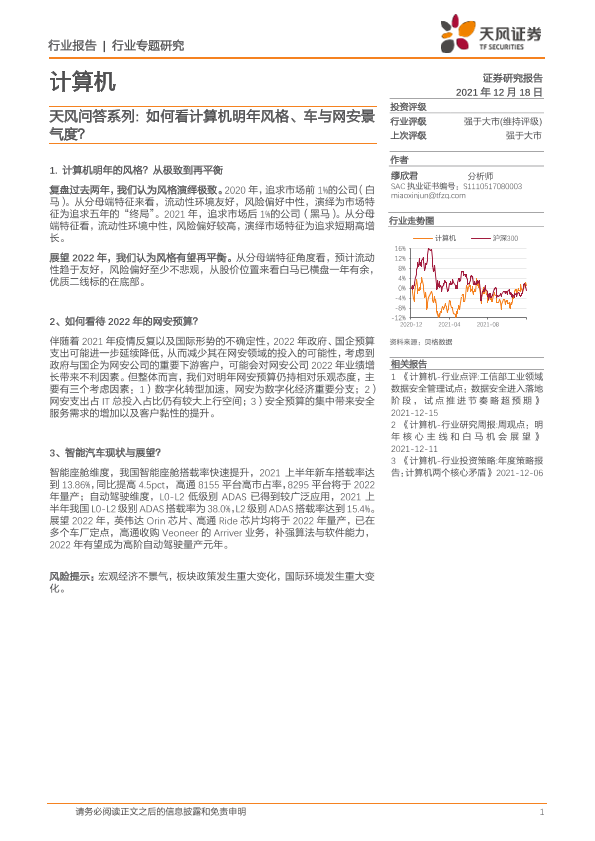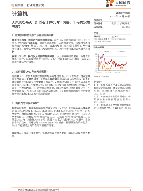 【天风证券】【20211218】天风问答系列:如何看计算机明年风格、车与网安景气度?-9页