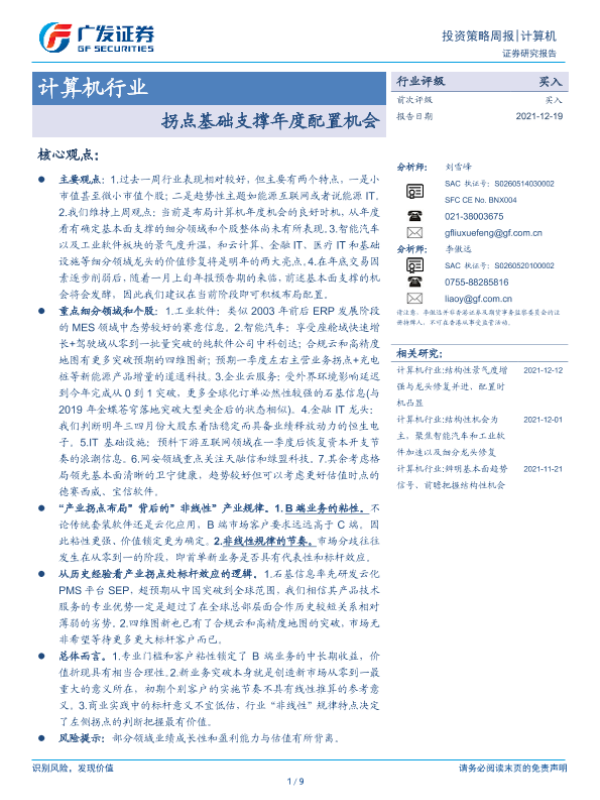 【广发证券】【20211219】20211219-广发证券-计算机行业投资策略周报:拐点基础支撑年度配置机会-9页