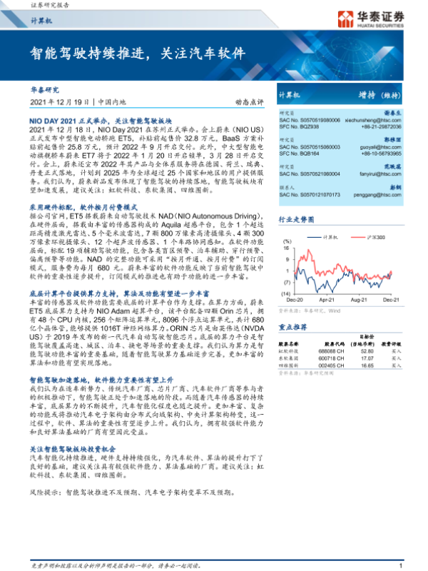 【华泰证券】【20211219】计算机:智能驾驶持续推进,关注汽车软件-5页