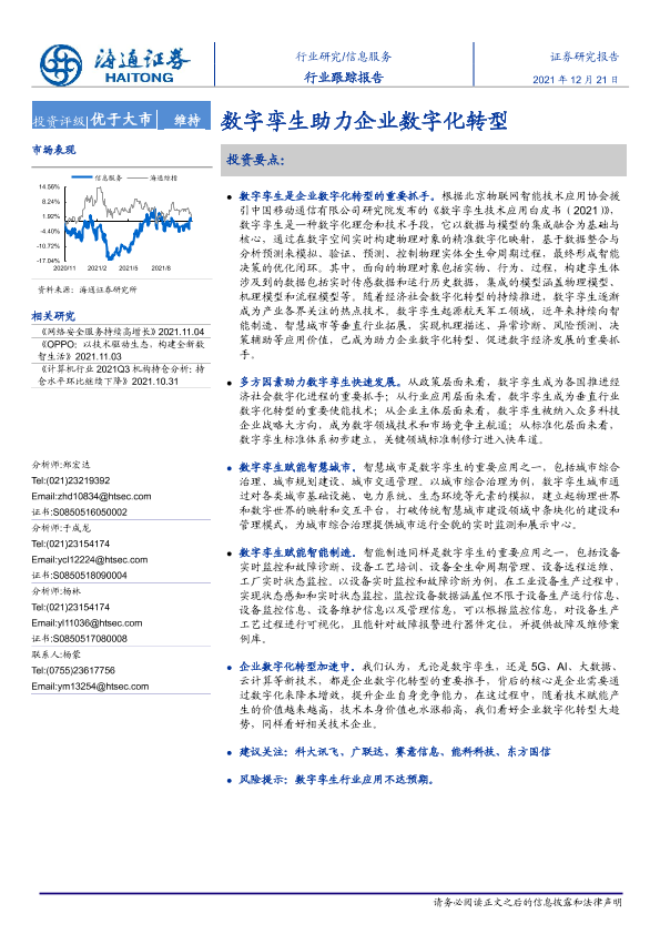 【海通证券】【20211221】信息服务行业跟踪报告:数字孪生助力企业数字化转型-2页
