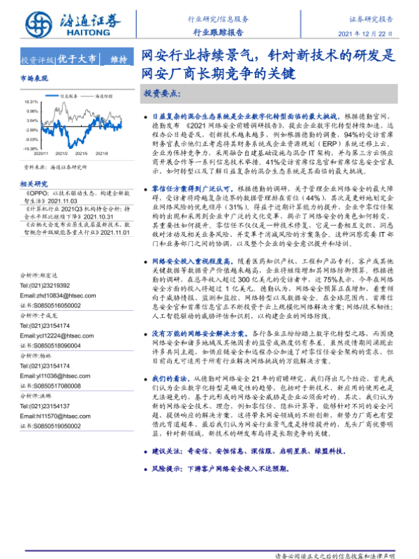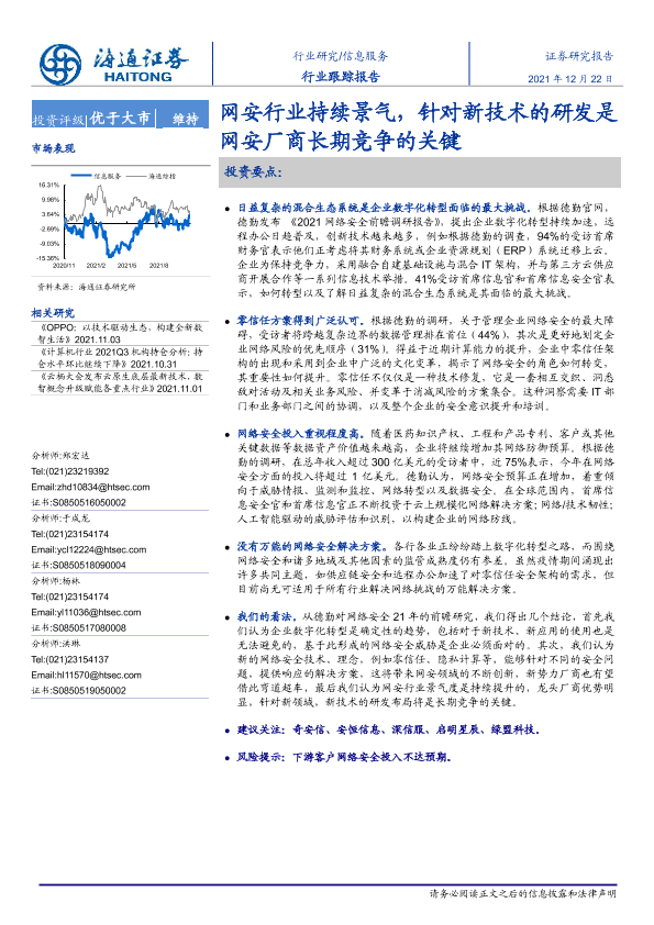【海通证券】【20211222】信息服务行业跟踪报告:网安行业持续景气,针对新技术的研发是网安厂商长期竞争的关键-2页