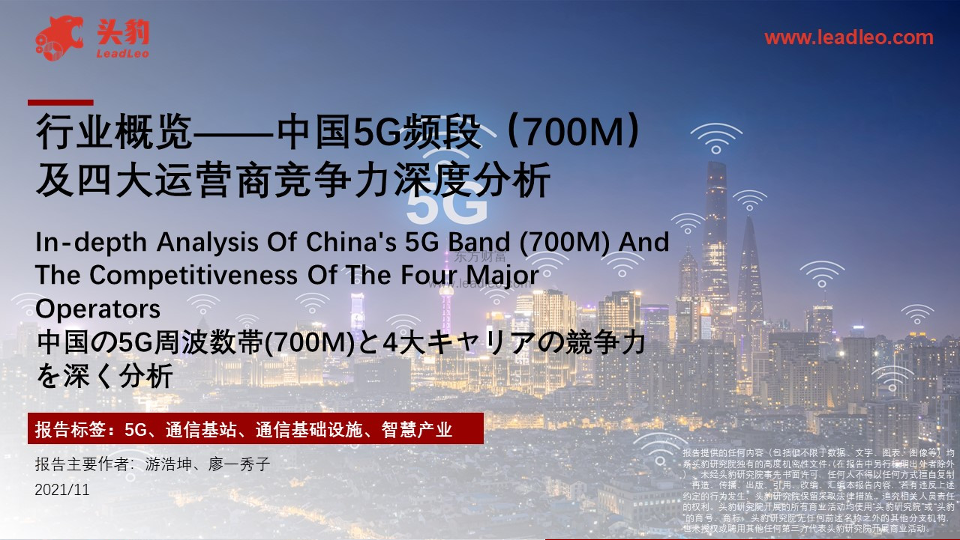 【头豹研究院】【20211224】中国5G频段(700M)及四大运营商竞争力深度分析-41页