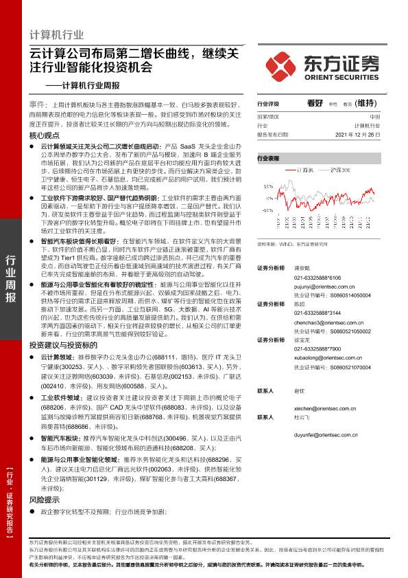 【东方证券】【20211226】计算机行业周报:云计算公司布局第二增长曲线,继续关注行业智能化投资机会-13页