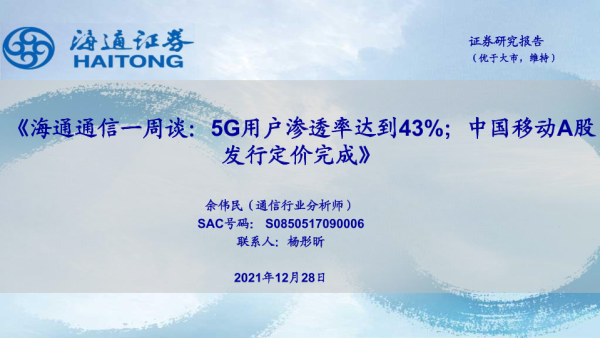 【海通证券】【20211228】海通通信一周谈:5G用户渗透率达到43%;中国移动A股发行定价完成-11页