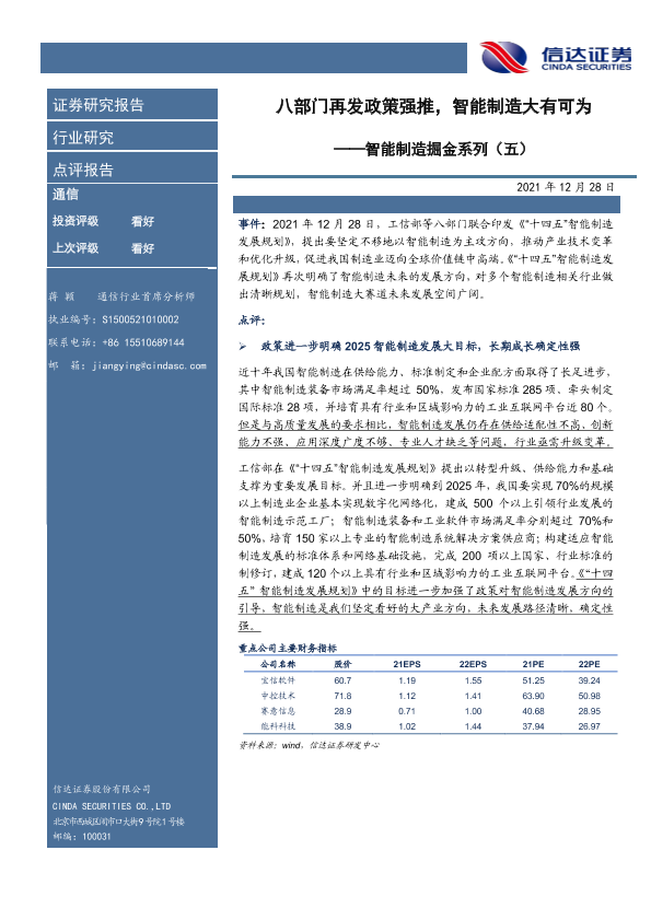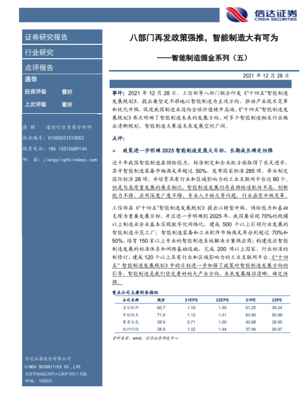 【信达证券】【20211228】智能制造掘金系列(五):八部门再发政策强推,智能制造大有可为-5页