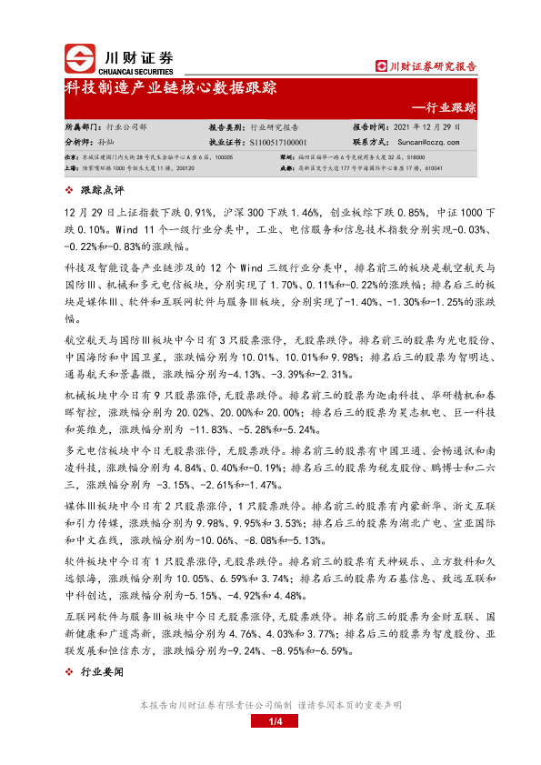 【川财证券】【20211229】科技制造产业链核心数据跟踪-4页
