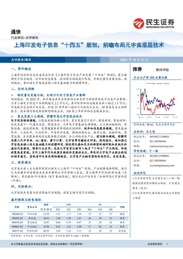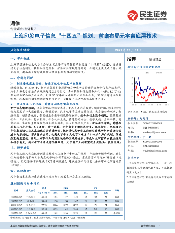 【民生证券】【20211231】上海印发电子信息“十四五”规划,前瞻布局元宇宙底层技术-3页