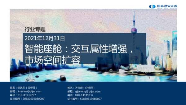 【国泰君安证券】【20211231】智能座舱:交互属性增强,市场空间扩容-16页