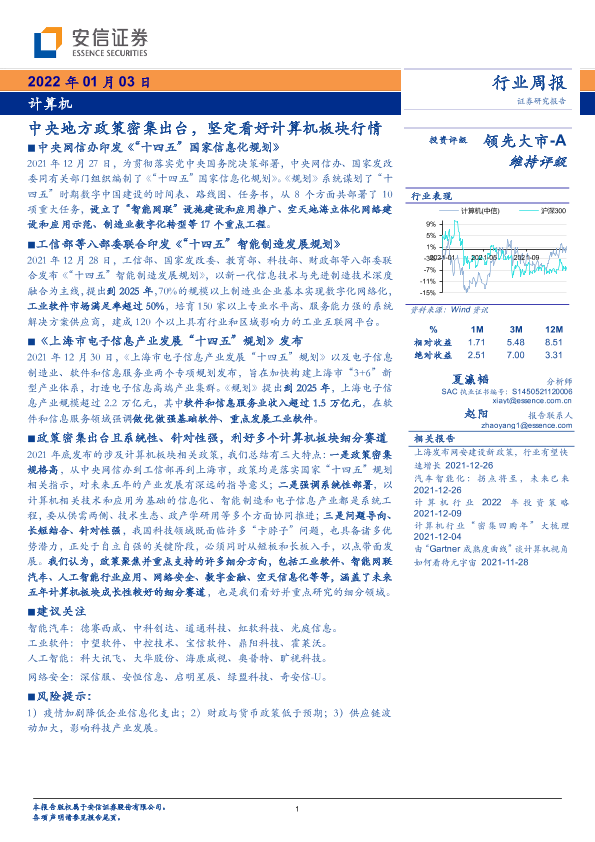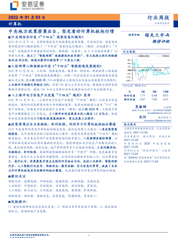 【安信证券】【20220103】20220103-安信证券-计算机行业周报:中央地方政策密集出台,坚定看好计算机板块行情-14页