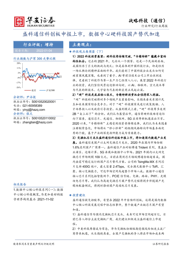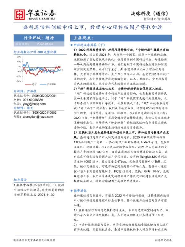 【华安证券】【20220104】20220104-华安证券-战略科技(通信)行业周报:盛科通信科创板申报上市,数据中心硬科技国产替代加速-18页