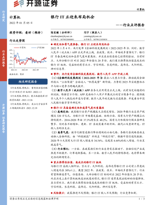 【开源证券】【20220105】计算机行业点评报告:银行IT正迎来布局机会-3页
