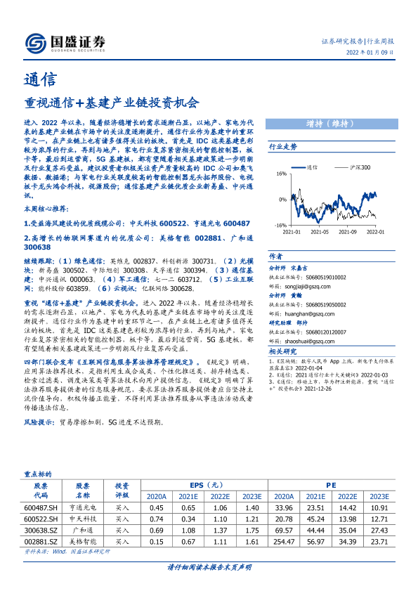 【国盛证券】【20220109】通信行业周报:重视通信+基建产业链投资机会-13页
