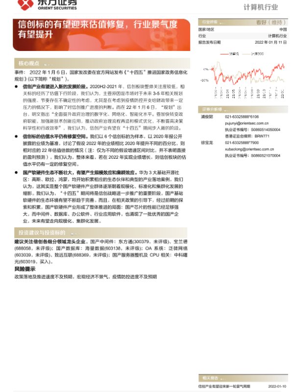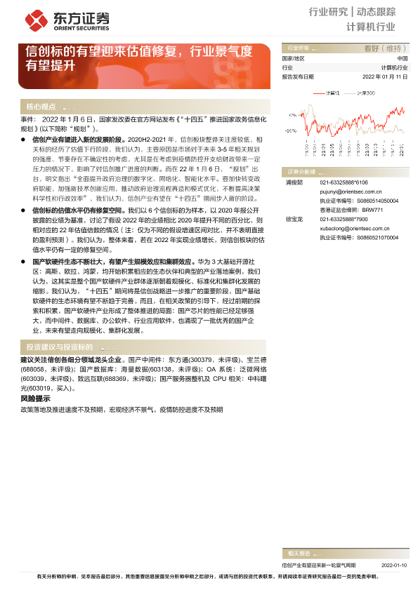 【东方证券】【20220111】20220111-东方证券-计算机行业动态跟踪:信创标的有望迎来估值修复,行业景气度有望提升-4页
