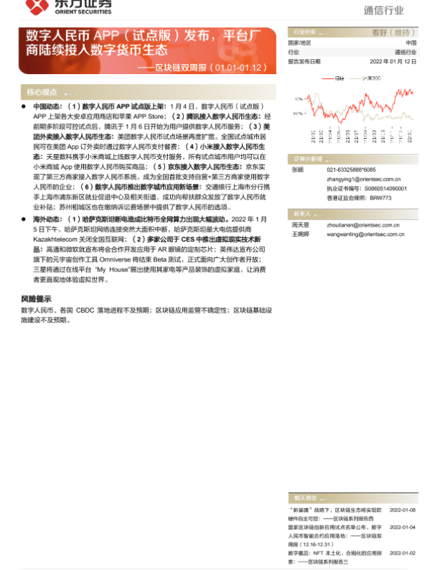 【东方证券】【20220112】通信行业周报:区块链双周报:数字人民币APP(试点版)发布,平台厂商陆续接入数字货币生态-10页