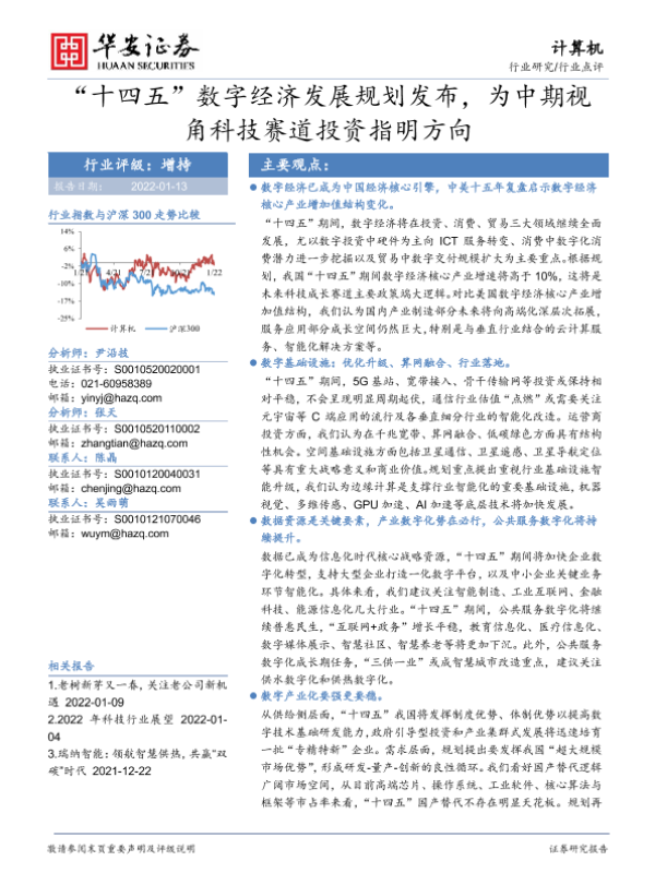 【华安证券】【20220113】“十四五”数字经济发展规划发布,为中期视角科技赛道投资指明方向-15页