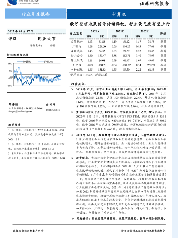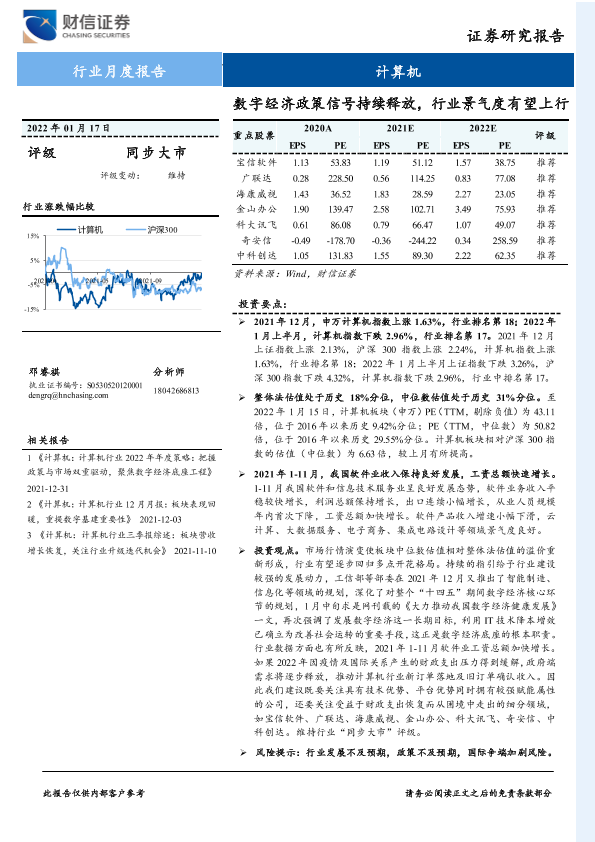 【财信证券】【20220117】计算机行业月度报告:数字经济政策信号持续释放,行业景气度有望上行-10页