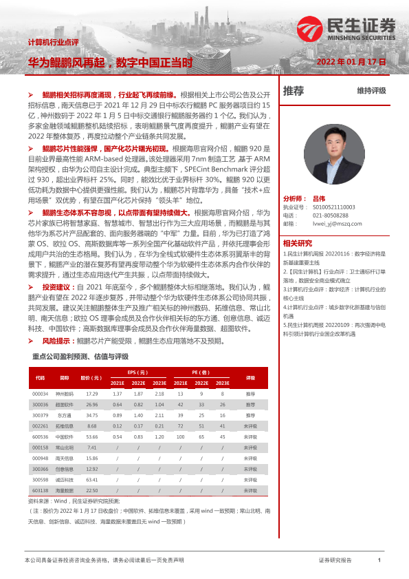 【民生证券】【20220117】计算机行业点评:华为鲲鹏风再起,数字中国正当时-2页