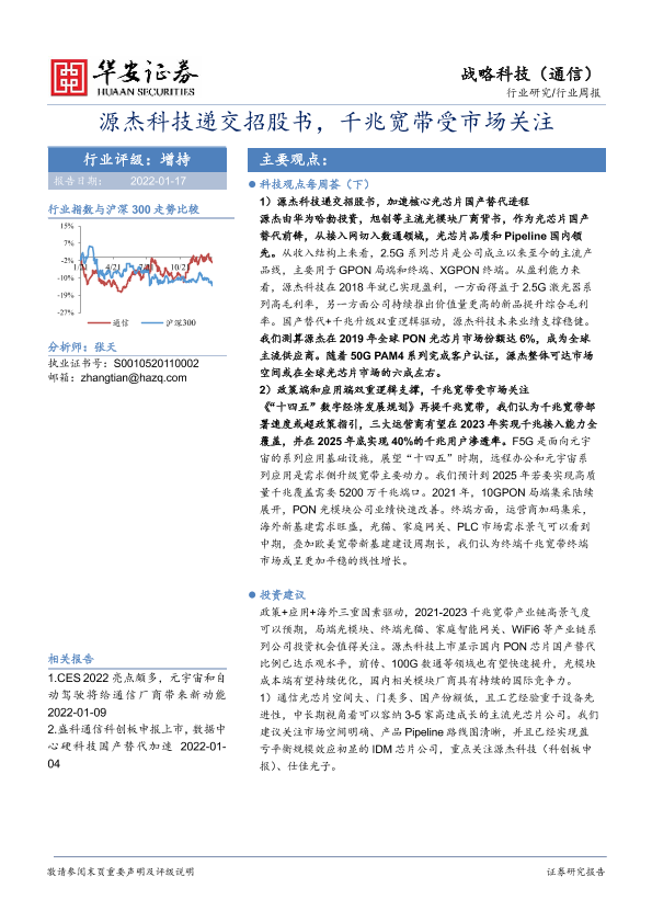 【华安证券】【20220117】20220117-华安证券-通信行业周报:源杰科技递交招股书,千兆宽带受市场关注-17页