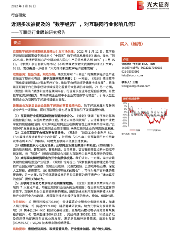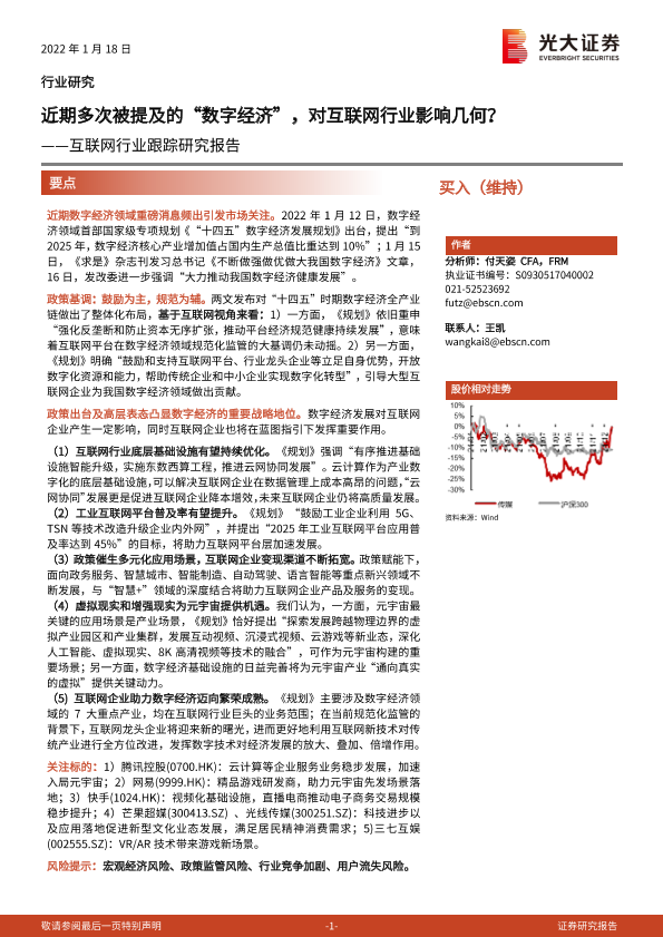 【光大证券】【20220118】互联网行业跟踪研究报告:近期多次被提及的“数字经济”,对互联网行业影响几何?-2页
