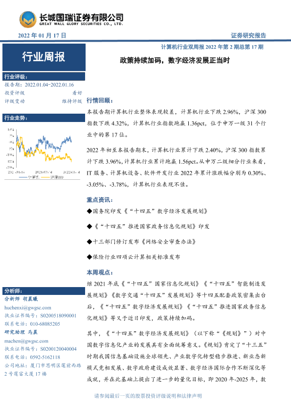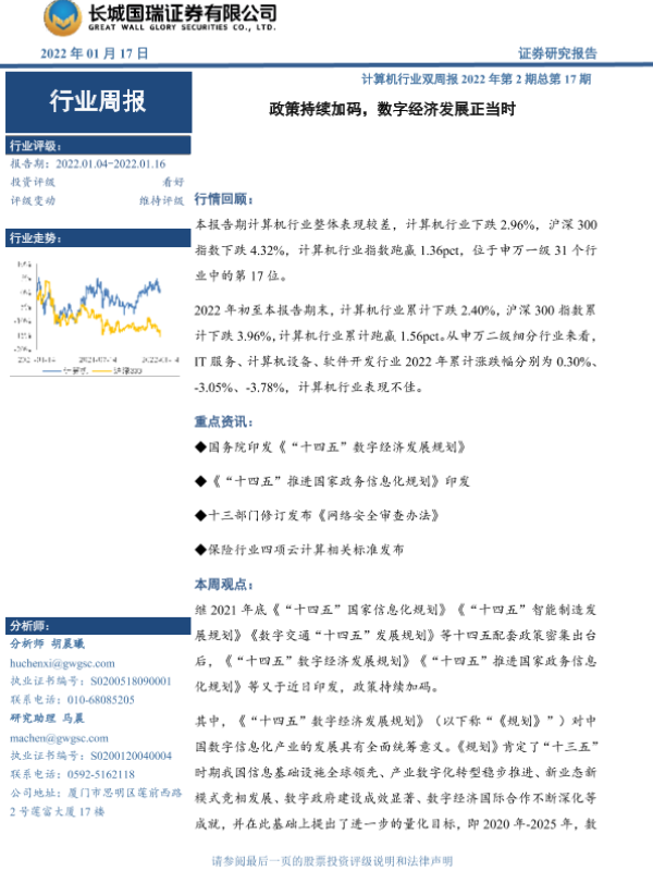 【长城国瑞证券】【20220117】计算机行业双周报2022年第2期总第17期:政策持续加码,数字经济发展正当时-9页