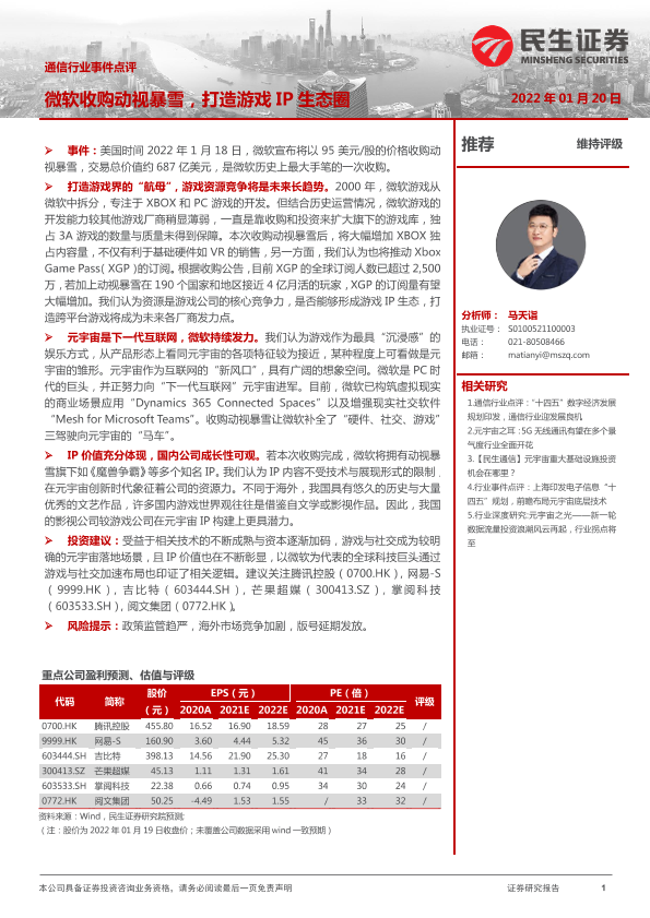 【民生证券】【20220120】通信行业事件点评:微软收购动视暴雪,打造游戏IP生态圈-2页