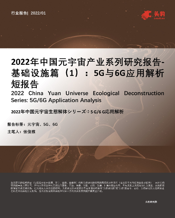 【头豹研究院】【20220119】2022年中国元宇宙产业系列研究报告-基础设施篇(1):5G与6G应用解析短报告-29页