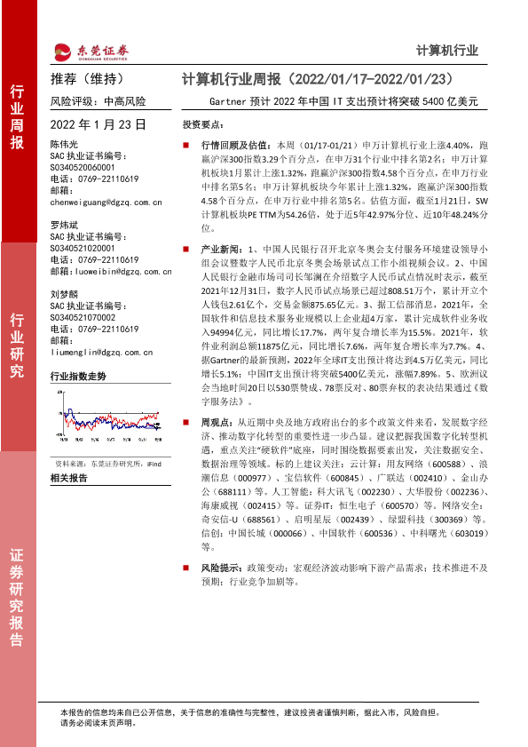 【东莞证券】【20220123】20220123-东莞证券-计算机行业周报:Gartner预计2022年中国IT支出预计将突破5400亿美元-8页
