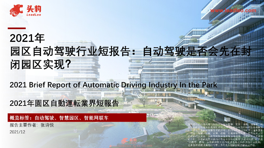【头豹研究院】【20220118】2021年园区自动驾驶行业短报告:自动驾驶是否会先在封闭园区实现?-29页