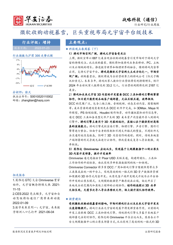 【华安证券】【20220123】20220123-华安证券-战略科技(通信)行业周报:微软收购动视暴雪,巨头重视布局元宇宙平台级技术-20页
