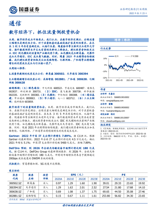 【国盛证券】【20220123】通信行业周报:数字经济下,抓住流量侧投资机会-15页