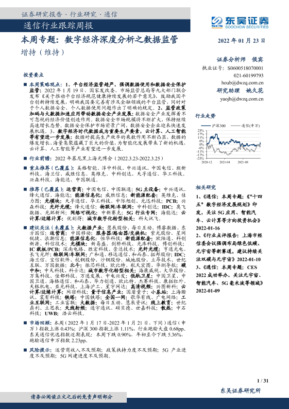 【东吴证券】【20220123】通信行业跟踪周报:本周专题:数字经济深度分析之数据监管-31页