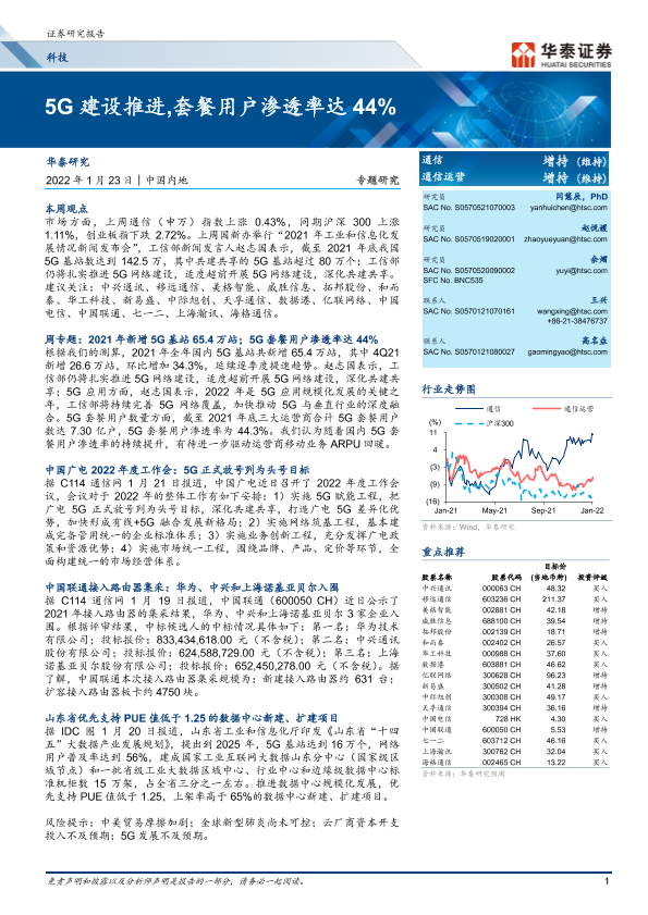 【华泰证券】【20220123】通信专题研究:5G建设推进,套餐用户渗透率达44%-18页