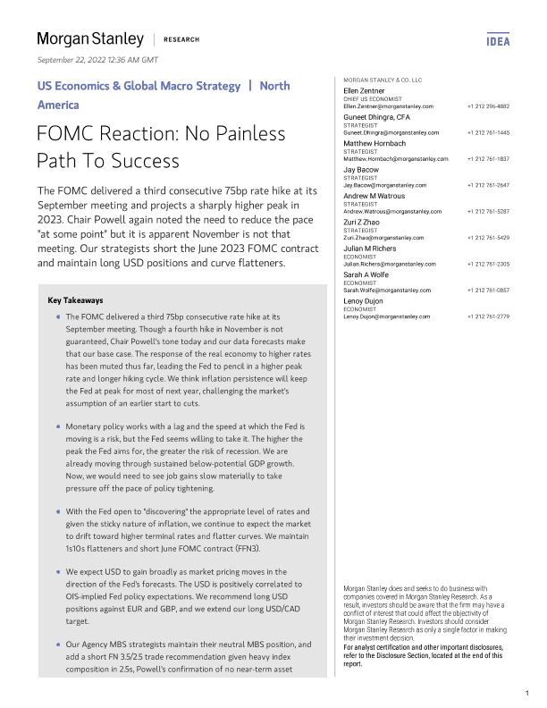 【Morgan Stanley】【20220922】FOMC Reaction No Painless Path To Success-23页