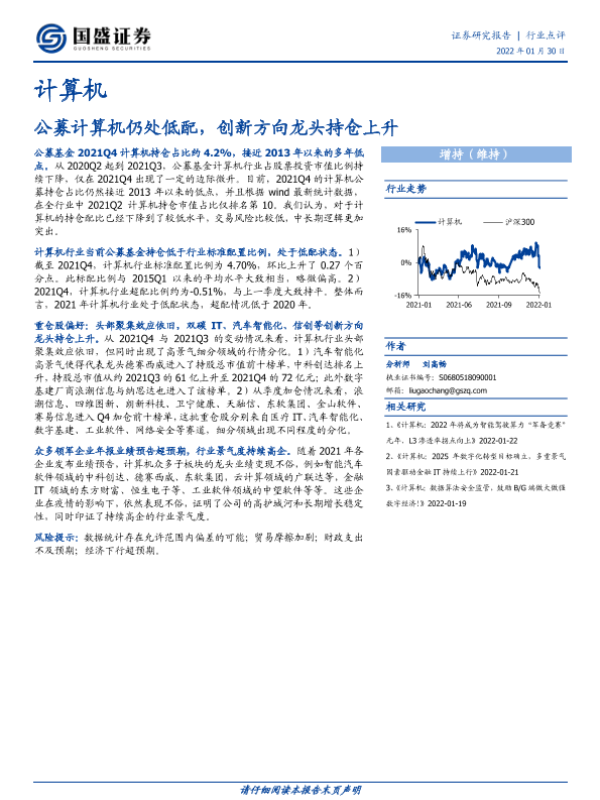 【国盛证券】【20220130】计算机:公募计算机仍处低配,创新方向龙头持仓上升-8页