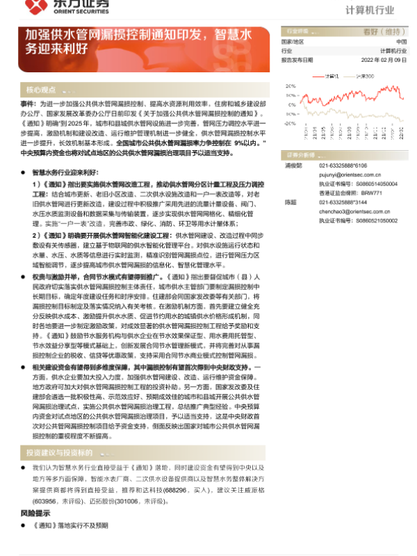 【东方证券】【20220209】20220209-东方证券-计算机行业动态跟踪:加强供水管网漏损控制通知印发,智慧水务迎来利好-3页