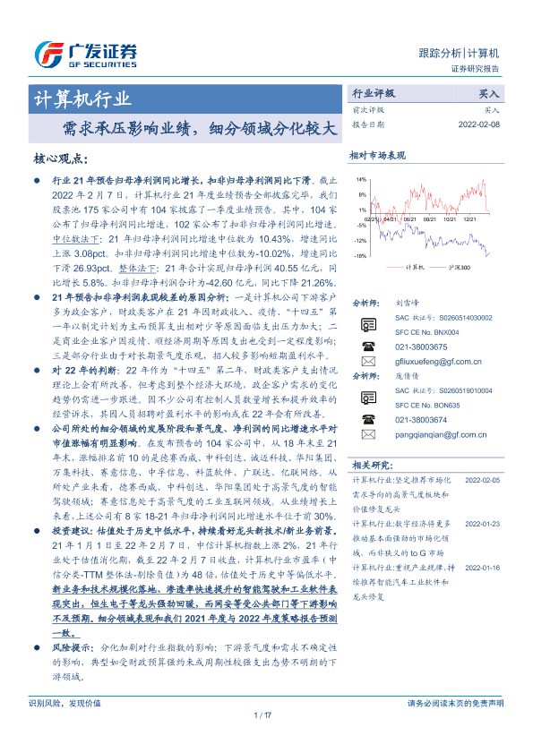 【广发证券】【20220208】20220208-广发证券-计算机行业跟踪分析:需求承压影响业绩,细分领域分化较大-17页