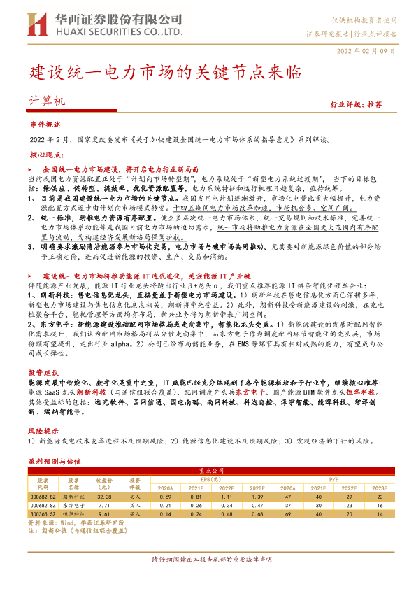 【华西证券】【20220209】建设统一电力市场的关键节点来临-4页