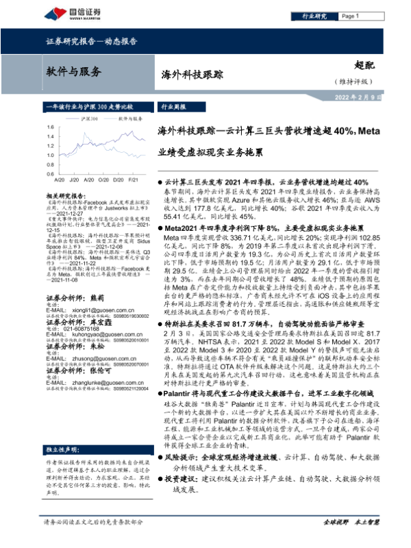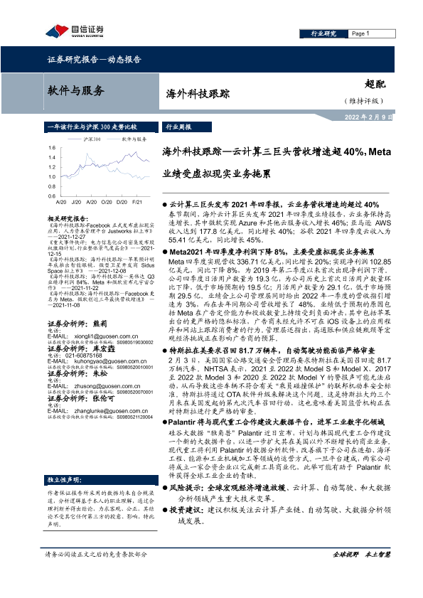 【国信证券】【20220209】海外科技跟踪:云计算三巨头营收增速超40%,Meta业绩受虚拟现实业务拖累-9页