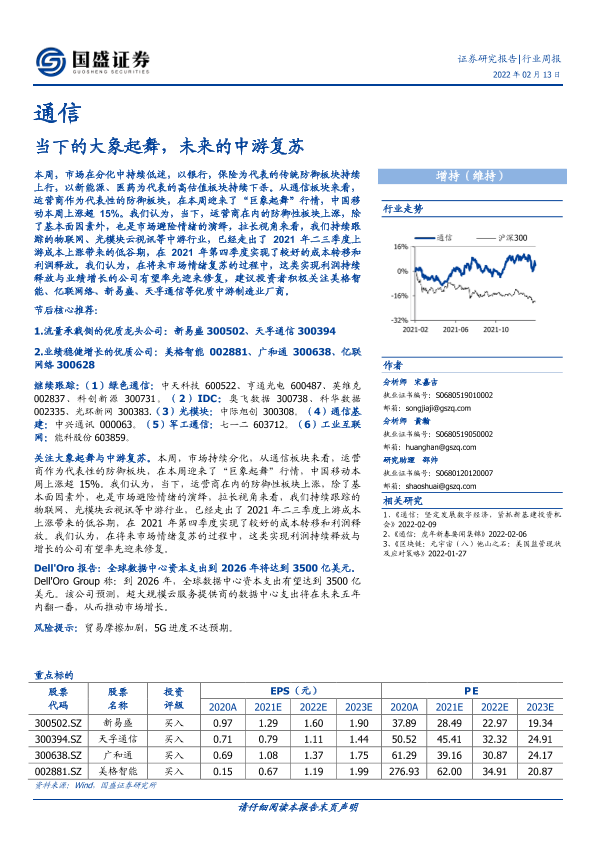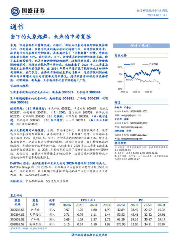 【国盛证券】【20220213】20220213-国盛证券-通信行业周报:当下的大象起舞,未来的中游复苏-11页