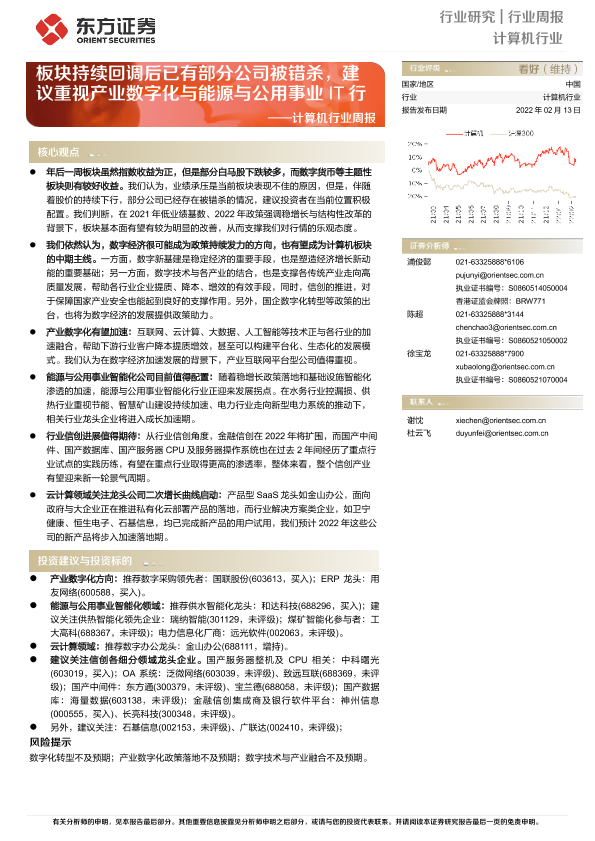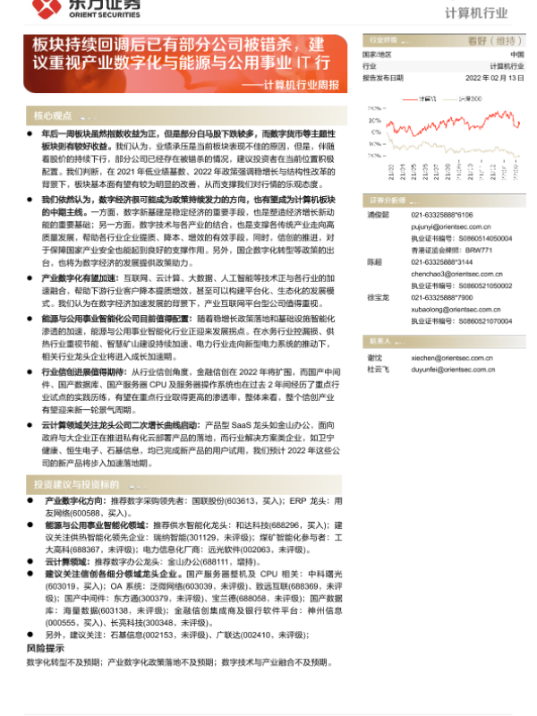 【东方证券】【20220213】20220213-东方证券-计算机行业周报:板块持续回调后已有部分公司被错杀,建议重视产业数字化与能源与公用事业IT行-11页