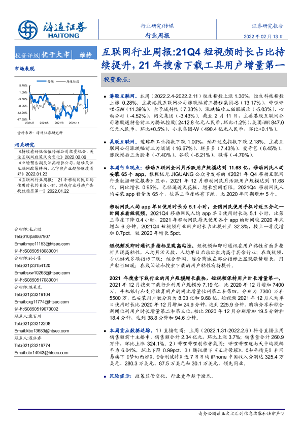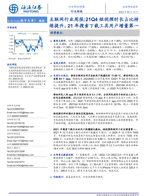 【海通证券】【20220213】20220213-海通证券-互联网行业周报:21Q4短视频时长占比持续提升,21年搜索下载工具用户增量第一-9页