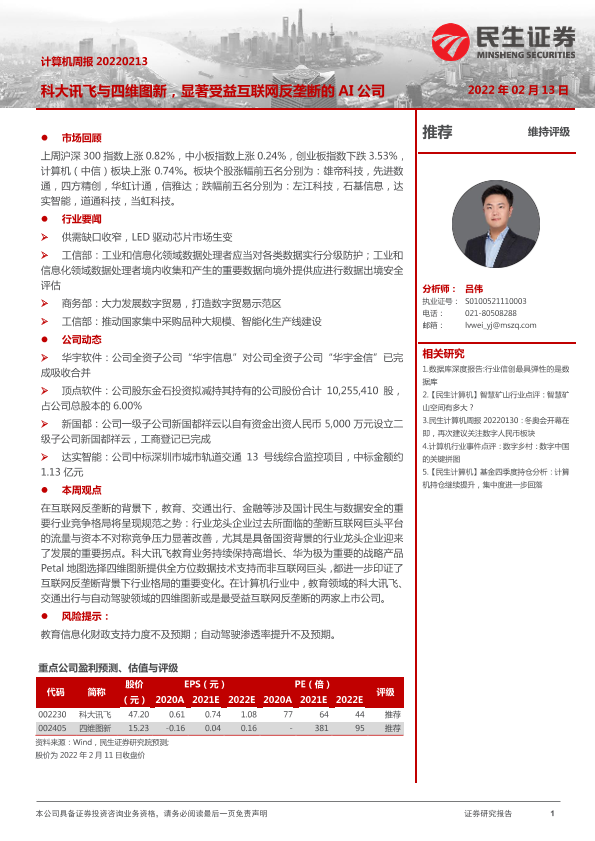 【民生证券】【20220213】计算机周报:科大讯飞与四维图新,显著受益互联网反垄断的AI公司-20页