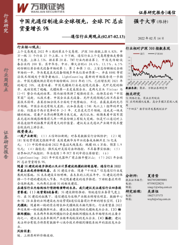 【万联证券】【20220214】中国光通信制造业全球领先,全球PC总出货量增长9%-12页