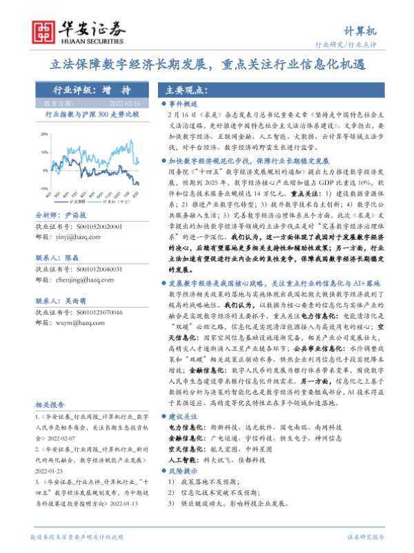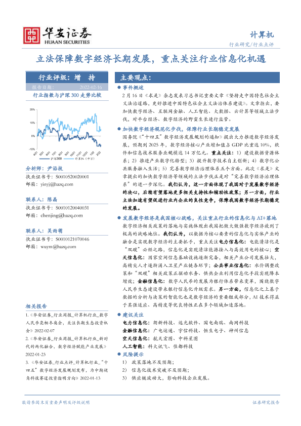 【华安证券】【20220216】计算机行业点评:立法保障数字经济长期发展,重点关注行业信息化机遇-2页