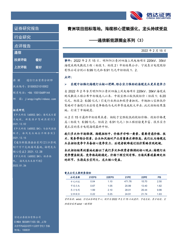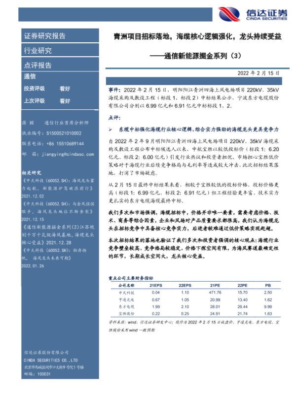 【信达证券】【20220215】青洲项目招标落地,海缆核心逻辑强化,龙头持续受益-5页