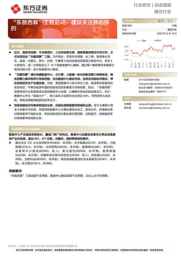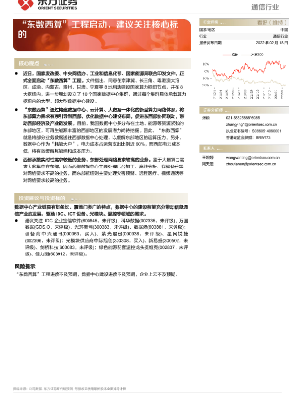 【东方证券】【20220218】通信行业:“东数西算”工程启动,建议关注核心标的-3页