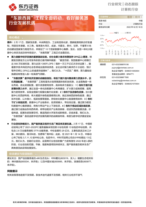 【东方证券】【20220218】计算机行业动态跟踪:“东数西算”工程全面启动,看好服务器行业发展机遇-3页