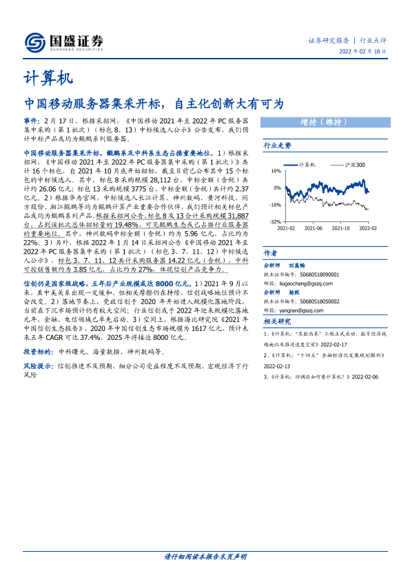 【国盛证券】【20220218】中国移动服务器集采开标,自主化创新大有可为-2页