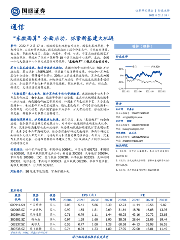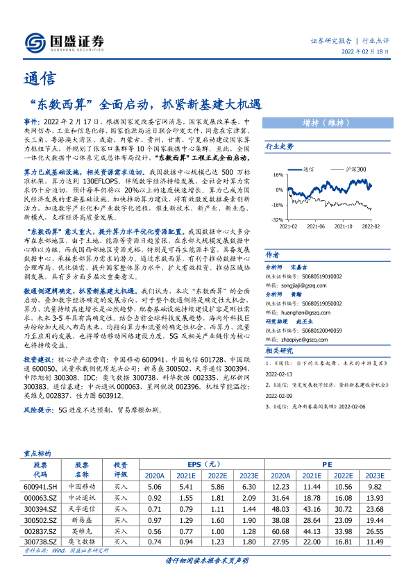 【国盛证券】【20220218】通信:“东数西算”全面启动,抓紧新基建大机遇-2页