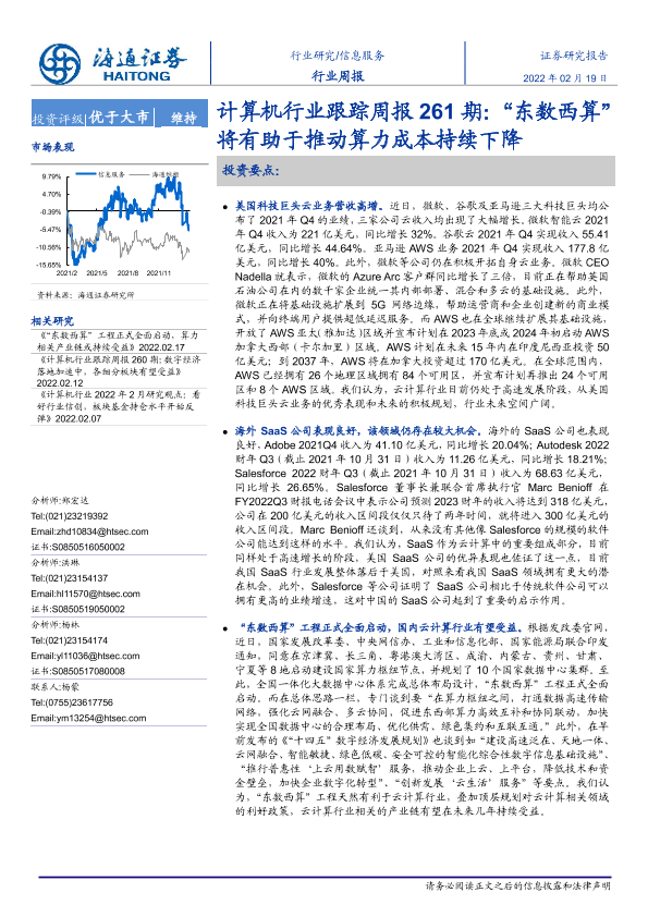 【海通证券】【20220219】计算机行业跟踪周报261期:“东数西算”将有助于推动算力成本持续下降-4页